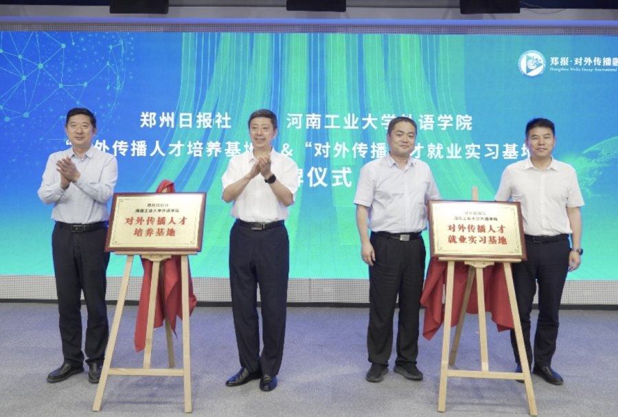 人才是新闻与传播事业发展的第一资源。当天,“郑报对外传播人才培养基地”和“河南工业大学对外传播人才就业实习基地”揭牌。