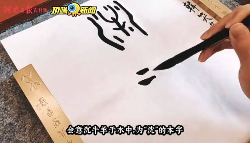 “你知道百家姓中‘沈’字的起源故事吗?甲骨文‘沈’是一个会意字,弯曲和中间有雨滴形状的是甲骨文‘水’字,头上顶着两只角的是甲骨文的‘牛’或者‘羊’字,会意沉牛羊于水中,为‘沈’的本字。甲骨文‘沈’最早表示沉默的意思。”11月24日,“韩笑甲骨文解字”视频再一次如约而至,自今年元宵节第一条视频在网上播出后,这已经是“韩笑甲骨文解字”的第169期了。