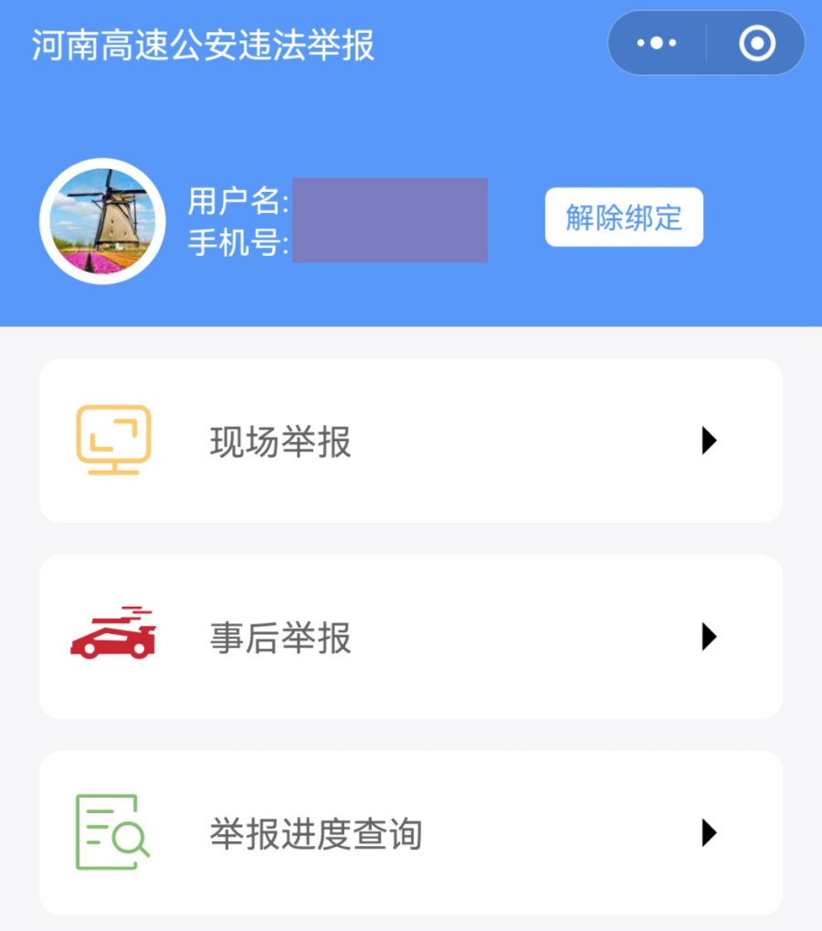 举报时,登录“河南高速公安”微信公众号,点击右下方小栏目“违法举报”,按照举报程序要求上传违法照片(至少2张)或违法视频,然后提交即可。举报分“现场举报”和“事后举报”两种。“现场举报”直接上传违法照片或违法视频,系统会自动定位违法地点,点击提交即可;如果是“事后举报”需要填写违法时间和地点,高速交警建议举报人在抓拍违法车辆的同时,通过“河南高速公安”微信公众号下方“一键报警”栏目查看违法地点,可以准确确认违法位置,让举报更有效。