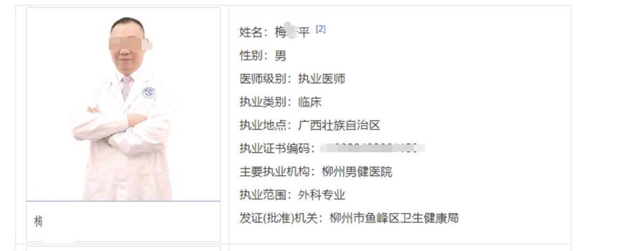 目前,柳州男健医院仍在正常运营。6月30日下午,记者联系了该医院的咨询电话,但随即被挂断。记者又以患者身份与医院人员交谈,表示希望能预约梅某平看病,该院工作人员表示“梅主任外出学习了”。随后其又表示,“梅主任已经调到其他医院上班,可能都不回来了。”