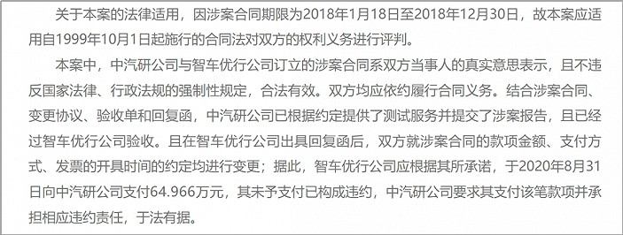 上月底,北京法院审判信息网消息显示,中汽研汽车工程研究院有限公司(下称“中汽研”)与智车优行北京分公司技术服务纠纷一案开庭,判后者向前者支付服务费64.9万余元及相关违约金。
