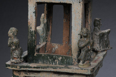西汉末期豪强势力扩张,厚葬之风愈演愈烈,对社会的破坏十分严重。为了满足豪族们死后仍能将生前的奢侈生活带进墓葬的需求,又不浪费过多社会财富,建筑明器的出现成了一种必然。因此,我们今天所看到的精美的陶制建筑明器,如陶楼、陶仓,陶水榭等,都是当时现实生活中各种各样的建筑替代物,是人们死后希望能够过上某种幸福生活的理想物。