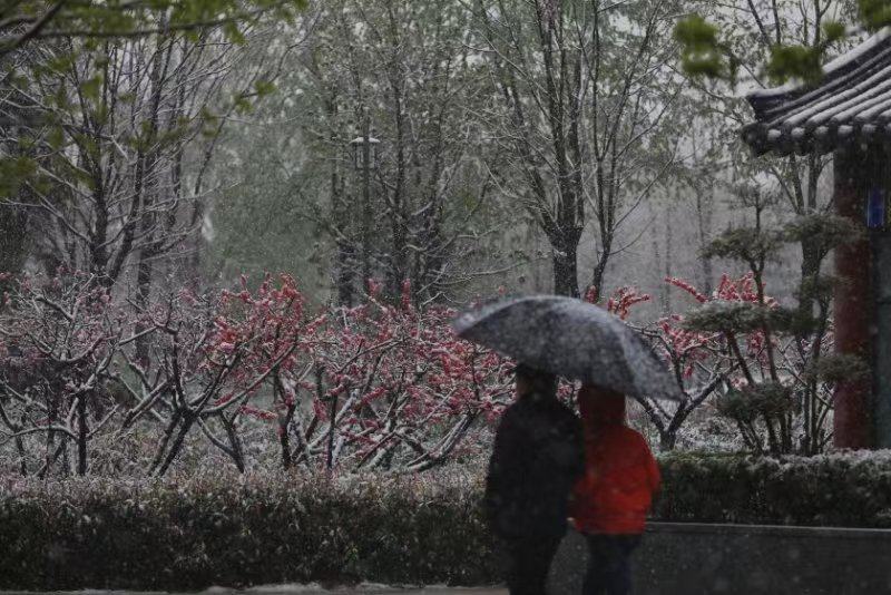 河南多地飘下“桃花雪”,预计后半夜结束