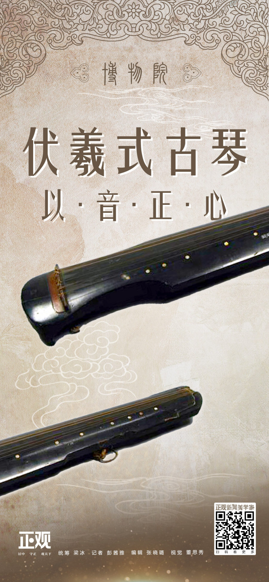 据中国科学院科学技术史博士、河南博物院馆员顾永杰介绍,伏羲式古琴相传由伏羲创制,《五知斋琴谱》记载:“伏羲间(见)凤集于桐,乃象其形,立高三尺,赠(增)六寸六分,制以为琴,法六律六吕之会,取期之数。纯素丝为弦。修真理性,反其天真。斫琴者则而象之,丝桐之制,自此始也。”