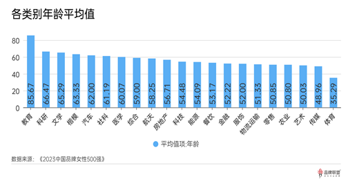 图:《TopBrand 2023中国品牌女性500强》各类别年龄均值情况