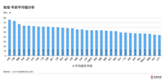 图:《TopBrand 2023中国品牌女性500强》各地区年龄跨度情况