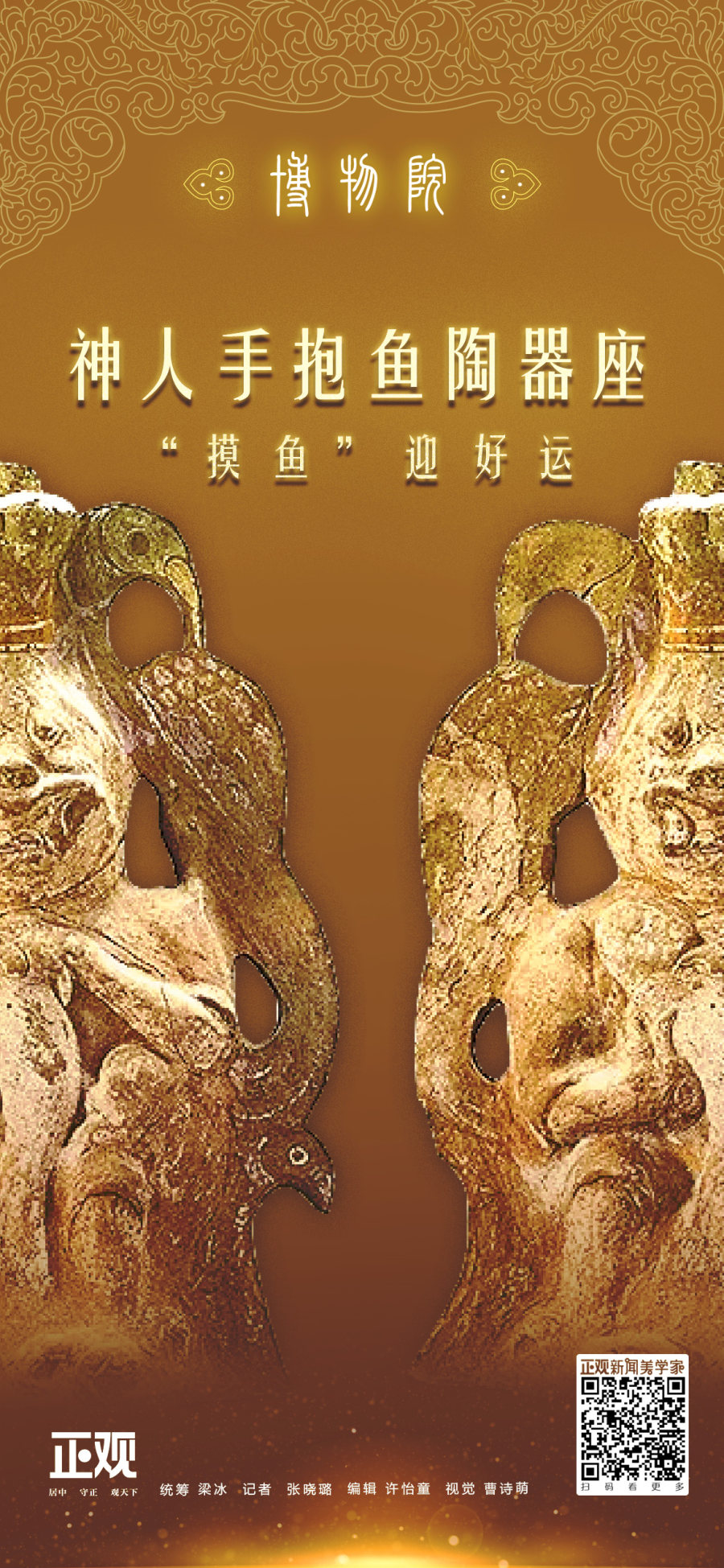博物院丨神人手抱鱼陶器座:“摸鱼”迎好运
