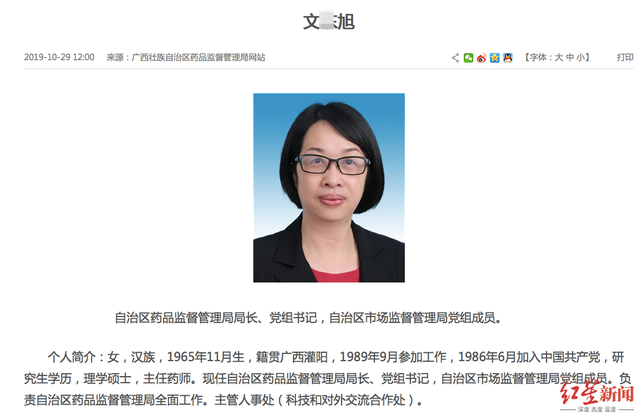 文某旭,图据广西壮族自治区药品监督管理局官网