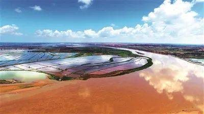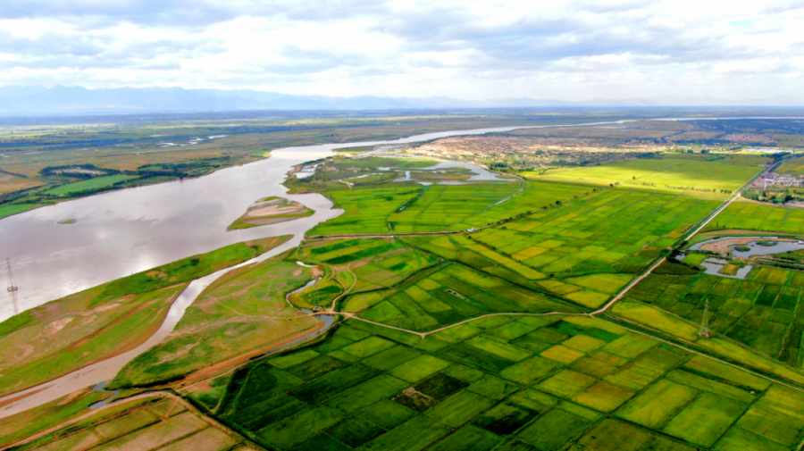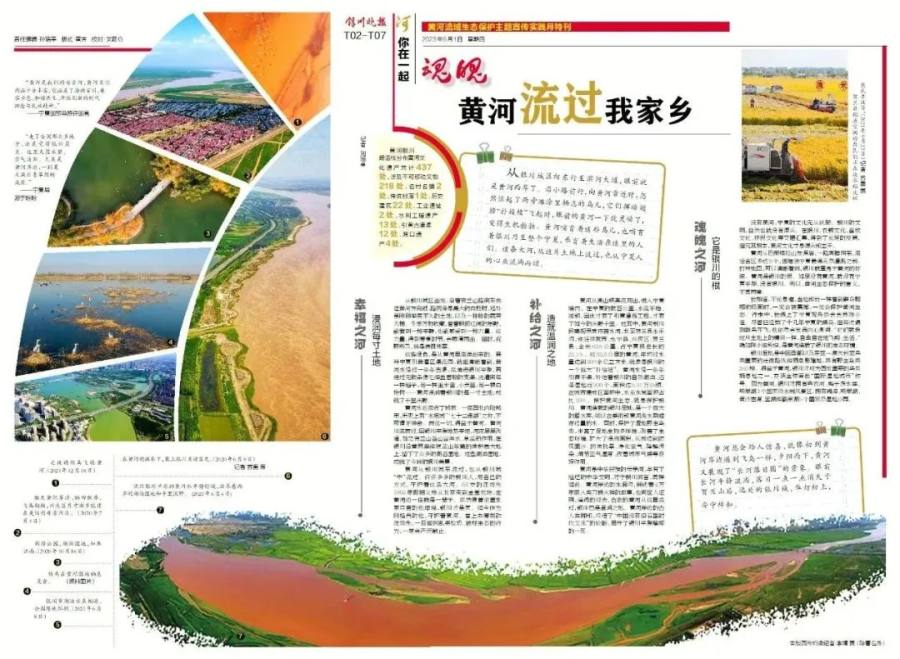 夏季的黄河银川段,天高水阔,林草丰茂,空中飞鸟翔集,动静之中演绎着生态之美……黄河流经银川83.8公里,宛如一幅长卷徐徐展开:水田林网、稻鱼共生、草木丰盈、瓜果飘香,成就了“塞上湖城”的美丽与富庶。