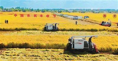 金秋时节,农民们收割水稻庆祝农民丰收节。资料图片