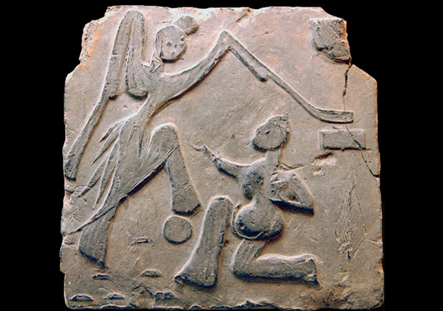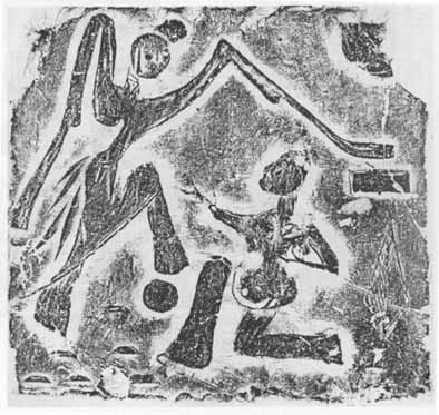 盘鼓舞画像砖,陶器,东汉文物,长39厘米,宽40厘米,厚4.7厘米。河南新野汉墓出土。现藏河南博物院。
