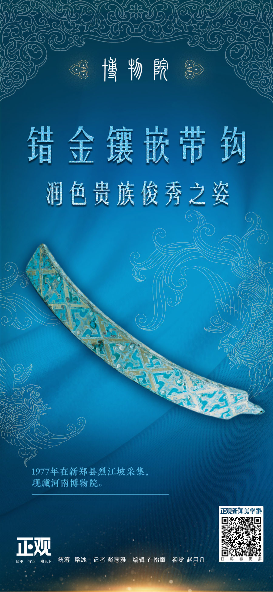 河南博物院收藏的这件错金镶嵌带钩,不仅是战国时期青铜铸造工艺成熟的体现,也标志着中国古代的错镶工艺已经达到很高的水平,对于研究我国古代的铜器铸造工艺、错镶工艺以及服饰史研究同样也提供了重要的实物例证。(正观新闻记者 彭茜雅)