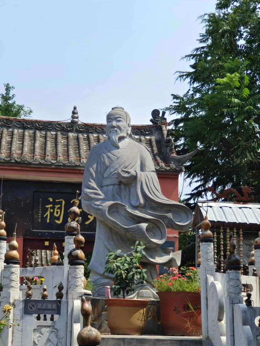 列子祠同列子墓一样被草木包围,其正门前便是有名的列子修道之处——八卦御风台。台上立着列子的雕像,慈眉善目,轻盈欲飞。