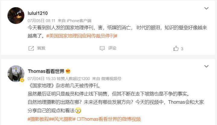 对于《国家地理》裁员转型的消息,微博上很多读者表示吃惊:这可是《国家地理》啊!时代终究变了。