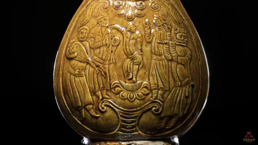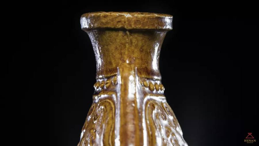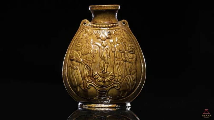 博物院丨黄釉扁壶:胡腾舞动西域风情