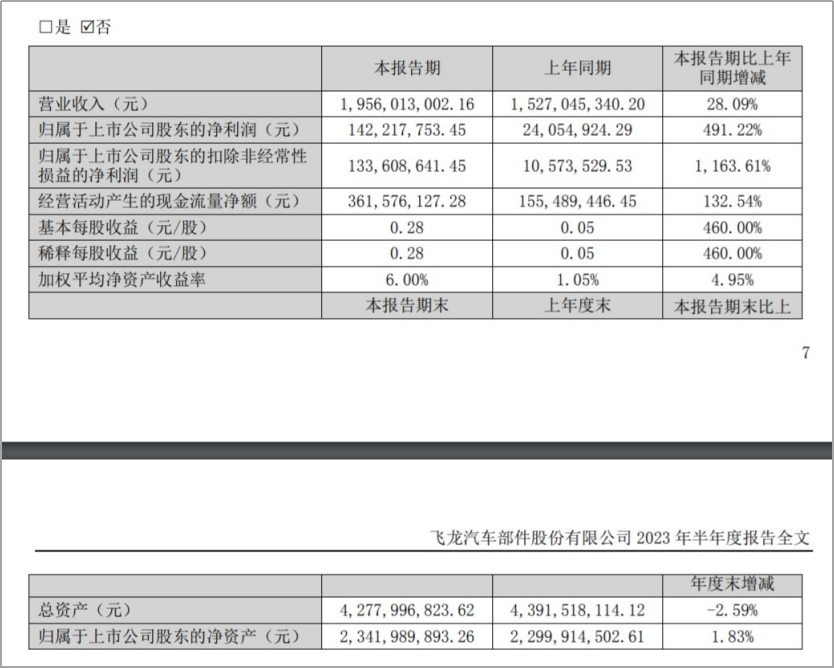 河南飞龙股份发布半年报:汽车零部件营收19.45亿元