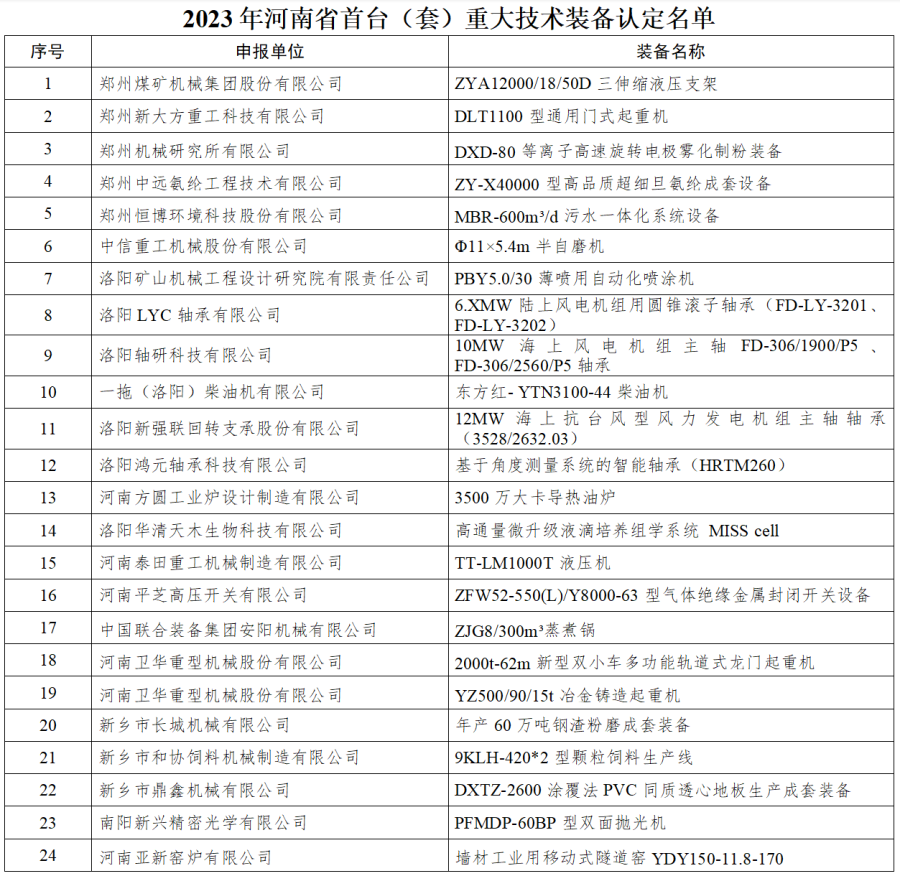 2023年河南省首台(套)重大技术装备名单出炉