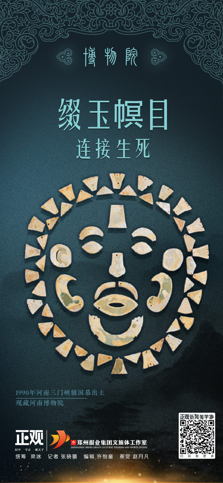 缀玉幎目,也称“玉覆面”“玉面罩”,玉器,西周文物。1990年河南三门峡虢国国君虢季墓出土,现藏河南博物馆。