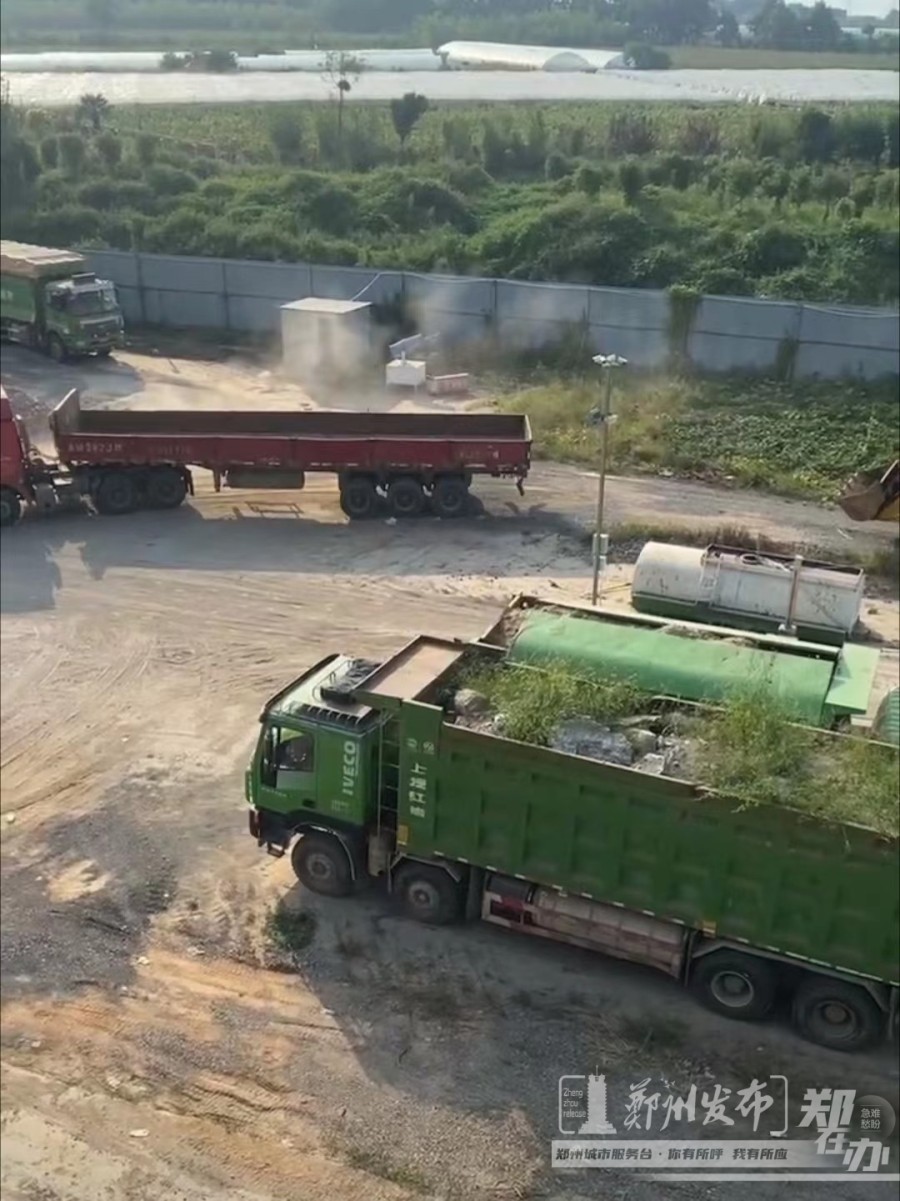 朱先生讲述,5月23日从郑州载运三车建筑垃圾行驶至荥阳市莲花街与荥广路交叉口,因涉嫌超载被巡逻的荥阳交警查扣,车辆被送至荥密路与310国道交叉口区域的一处停车场。之后,他和其他两车车主到停车场处理违法,被告知车上运载的是建筑垃圾,需要先到荥阳市城市管理局接受处理。