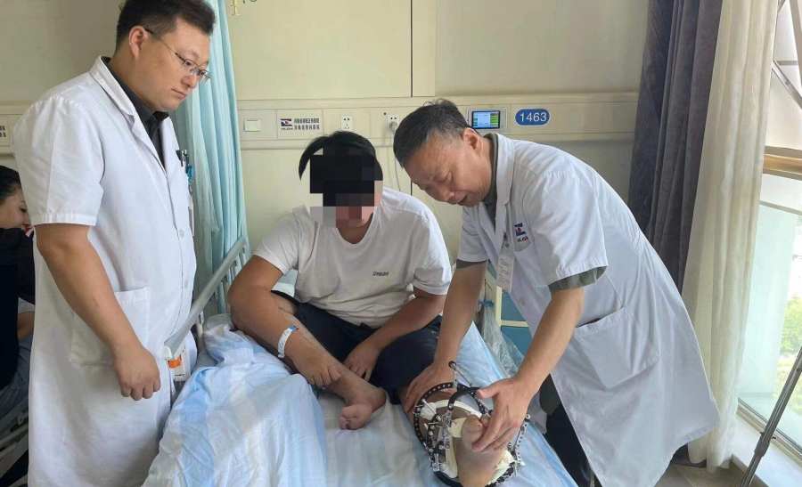 刘新江在接诊时,发现小刘的双足布满创伤,一问得知,原来是车祸导致左小腿上段离断、左大腿多处骨折,实施手术后造成的“下肢挤压伤和创伤性切断后遗症,下肢神经损伤后遗症”,经过全面评估和完善相关检查后,刘新江团队为其制定了精准、详细的治疗方案,实施了““右侧下肢Ilizarov环形外固定架矫形术”,术后,小刘畸形的“马蹄足”得到矫正,逐渐趋向正常。