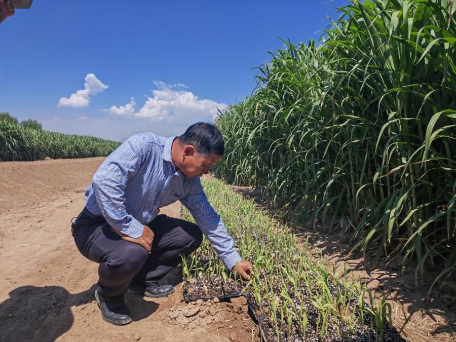“巨菌草蛋白含量高,是菌菇栽培、牛羊饲养的好原料,而且耐盐碱、根系发达、出草量大、‘吃盐’能力很强。种植一百多天后,土地含盐量下降了约70%。”研究中心高级农艺师周兴德欣喜地说。