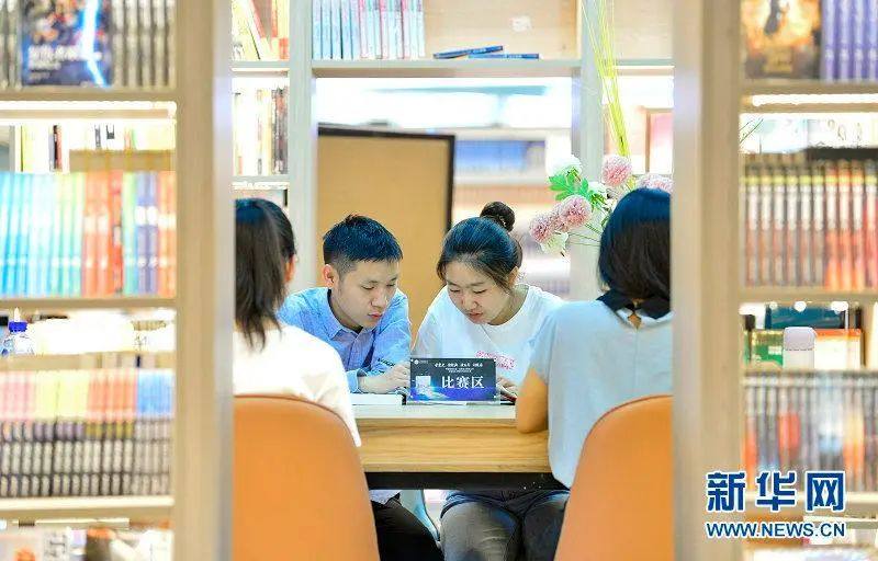 大学生在阅读马拉松比赛中进行学习交流。新华网发 王正 摄