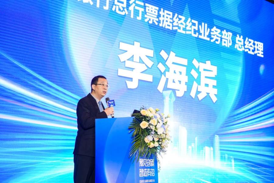 招商银行总行票据经纪业务部总经理李海滨向与会嘉宾致感谢词,并发表会议主旨演讲。李海滨总经理表示,百年未有之大变局下,高端装备行业正迎来前所未有的快速发展阶段,票据尤其是商票也已然成为高端装备行业最重要的支付结算和融资工具,据不完全统计,2022年全年,整个行业商票签发量超4000亿元,签发企业近千家,为了更好地服务招商银行票据客户,招商银行在战略支持、组织体系、金融科技、产品体系等方面做了充分准备,推出“新一代票据大管家”服务平台,为用票客户提供“一站式、综合化、智能化”服务。尤其在深耕高端装备产业链方面,招商银行由总行战略部牵头行业专营,通过行业专业化、投商行一体化和全行服务一家等机制调动全行资源,目前已与数千家高端装备制造企业开展票据业务合作,为行业客户提供商票贴现融资服务。
