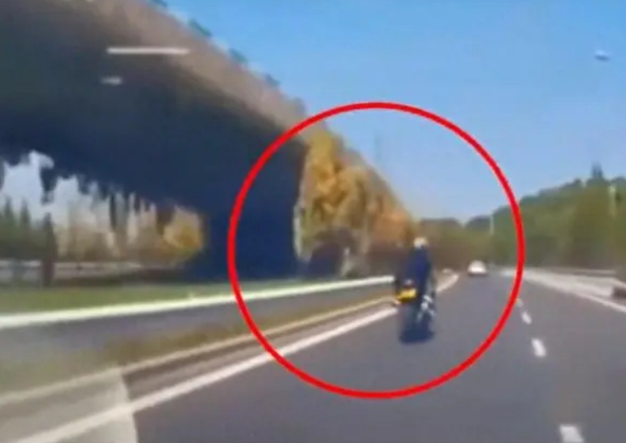 行车记录仪显示,9月15日下午,该骑手在快车道超车驶入隧道,随后翻倒在地。