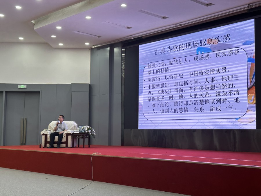 现场,李少君还向同学们分享了如何将“人诗互证”的原则融入到作品中,也解释了一个优秀的诗人应该具备哪些素质和才能,而这些素质和才能又如何影响诗歌的创作和境界。