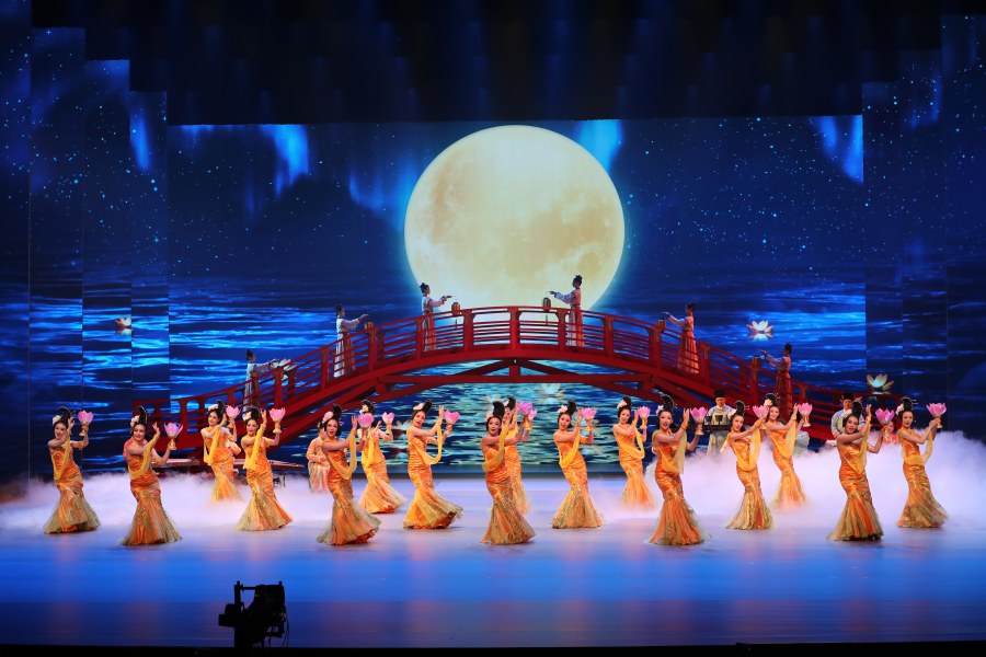 “诗源”致敬华夏经典,一曲《诗国盛典》低吟高歌、追根铸魂,体现中华文化源远流长、薪火相传。“诗忆”点亮黄河精神,配乐演奏《大河——献给黄河》以赤子之心讴歌母亲河;豫剧《杜甫·大河之子》展现了诗圣以天下为己任的使命担当;中国功夫《化境》传承中华武术魂,彰显爱国情、报国心。“诗脉”尽显中华文化魅力,《千秋家国情》联诵古诗名篇,树立起中国古代爱国诗人群像;《水月洛神·芙蓉池》演绎洛神传说,展现厚重中原文化;《数星星》以河南曲艺的形式讲述姓氏背后的著名诗人;《金秋:爱的抒怀》将诗歌永恒的主题融入情境;《但愿人长久》集流行和古意于一身。“诗颂”描绘盛世图景,以《致祖国》回望“五四”以来的新诗之路;《风雅颂》以歌声传达诗意,传承历史文脉,展现当代华章;演出最后,全场放歌《新时代进行曲》,唱响时代新声,振奋民族精神。