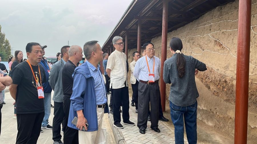 当天行程的第二站青台遗址,位于黄河与淮河流域分界线西北侧的河旁台地上,这里出土了麻织品和丝织品实物,特别是其中有色泽的浅绛色丝织品——罗的发现,填补了中国新石器时代考古与研究的一项空白,证明了史籍记载之黄帝及其元妃嫘祖“育蚕、取丝、造机杼作衣”等传说的可信性。