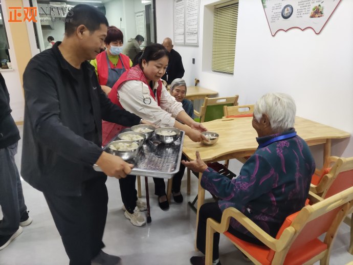 “开饭喽!”10月12日中午,巩义市紫荆路街道黄冶社区老年日间照料中心大食堂一下热闹起来,约30名八旬老人准时赶来吃饭。饺子、清炒时蔬、鸡蛋甜汤……老人们拿起筷勺,一边聊家常,一边享受美食。