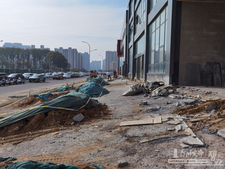 10月18日上午9时许,记者由中原路转入仍在施工中的洛达路,向南行约100多米的路面已经停上了各类车辆,路西临街开设的多家汽车4S店也已开始营业,市民所说被占用的区域处于洛达路机动车道与几家4S店展厅和维修车间之间,是一段宽约3米、长度断续近百米的进出水泥坡道,部分坡道上仍摆放有水泥等建筑材料。
