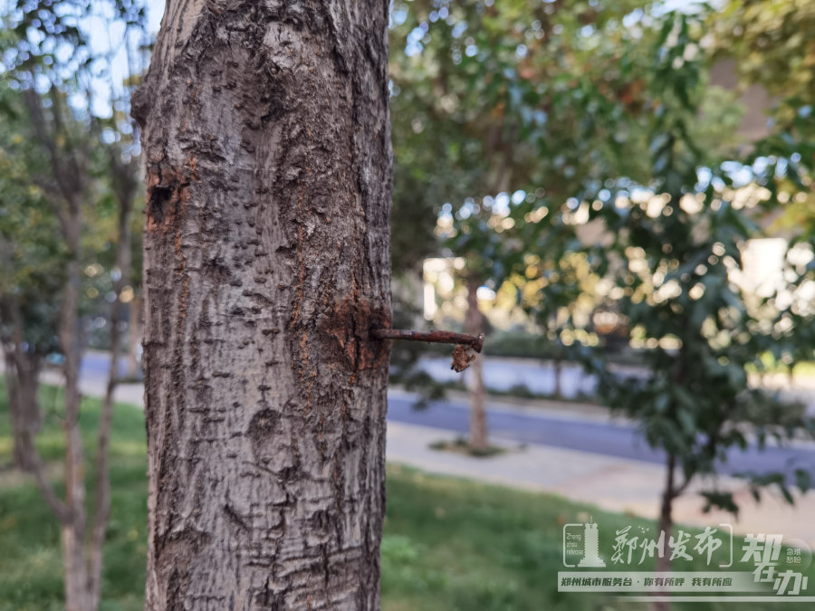 “北三环索凌路至普庆路段,路南的绿化带里许多树木身上有大铁钉,看着特别难受,能否检查一下把钉子拔干净!”10月30日,网友向郑州发布·郑在办反映,索凌路至普庆路段的北三环生态廊道内,不少树木的树身上留着锈迹斑斑的铁钉子,希望相关部门采取措施拔掉钉子。
