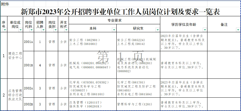 附件:新郑市2023年公开招聘事业单位工作人员岗位计划及要求一览表