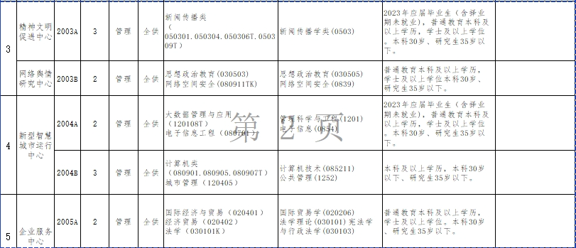 3.面试。面试采取结构化面试。面试满分为100分,主要测试考生的综合分析能力、举止仪表、语言表达能力、逻辑思维能力、临场应变能力、自我情绪控制、求职动机与拟任职位的匹配性等。