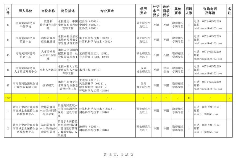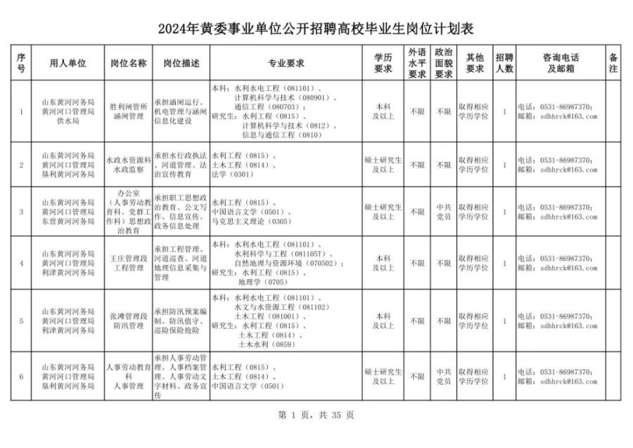根据黄河保护治理工作需要,黄河水利委员会所属单位公开招聘优秀应届毕业生。
