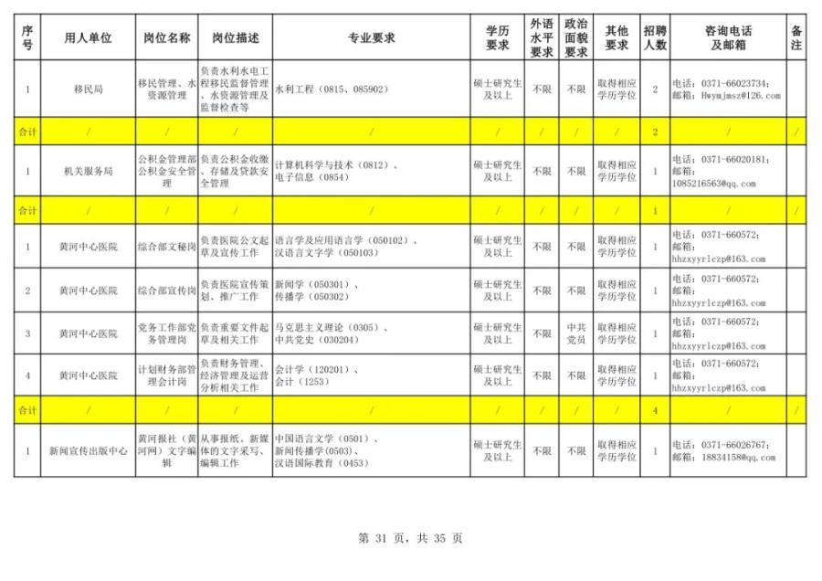咨询电话:请在工作时间,拨打岗位明细表中的电话或0371-66022251