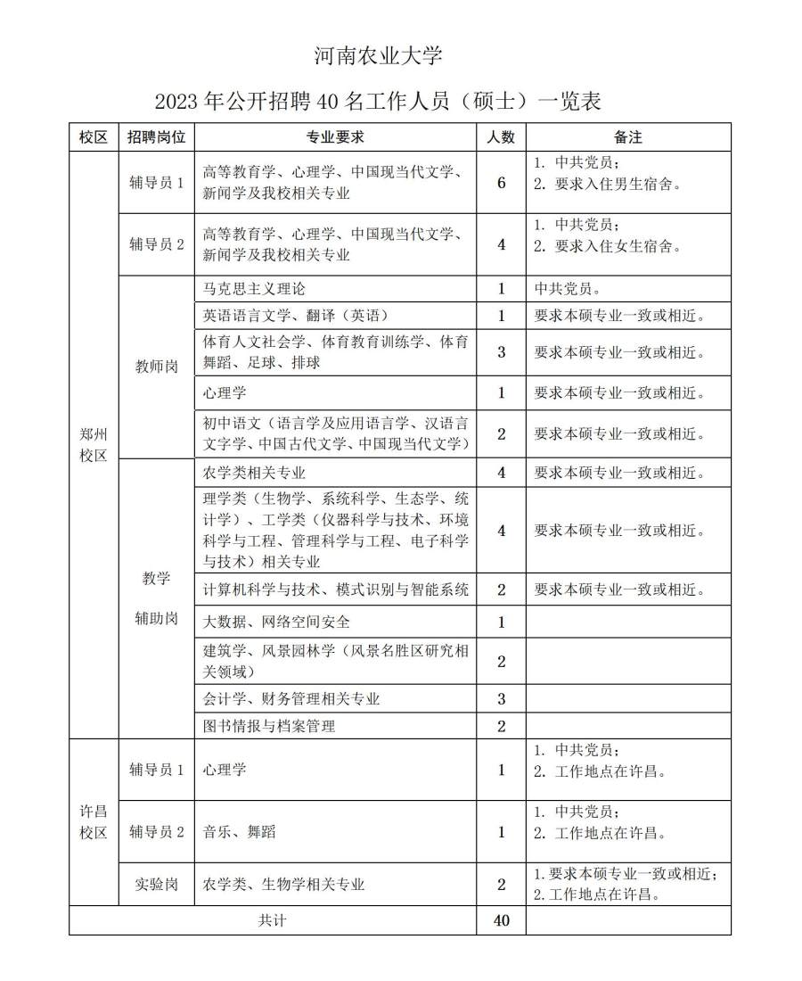 7.其他要求见附件《河南农业大学2023年公开招聘工作人员(硕士)一览表》。
