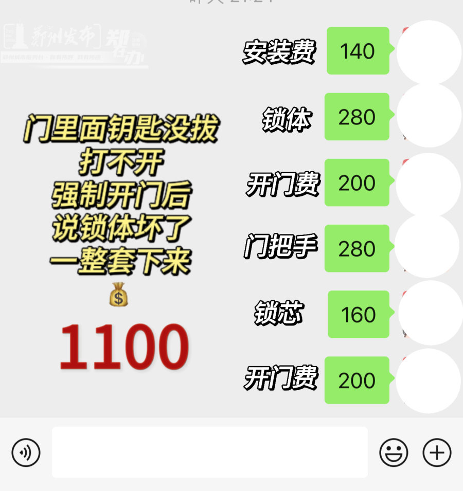 开门换锁花1100元,女孩质疑遭遇开锁“刺客”