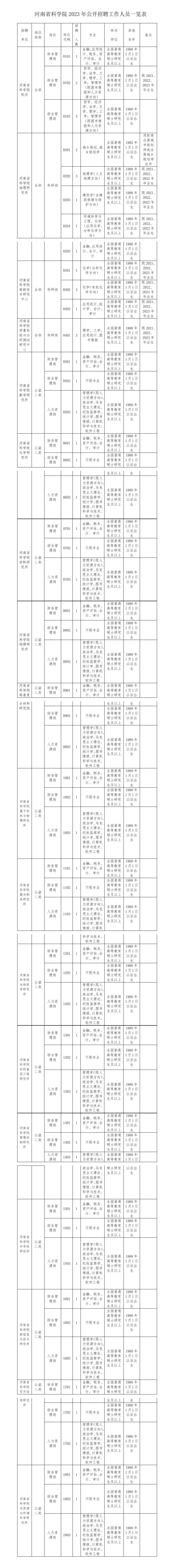 招聘单位:河南省科学院机关及所属研究机构。