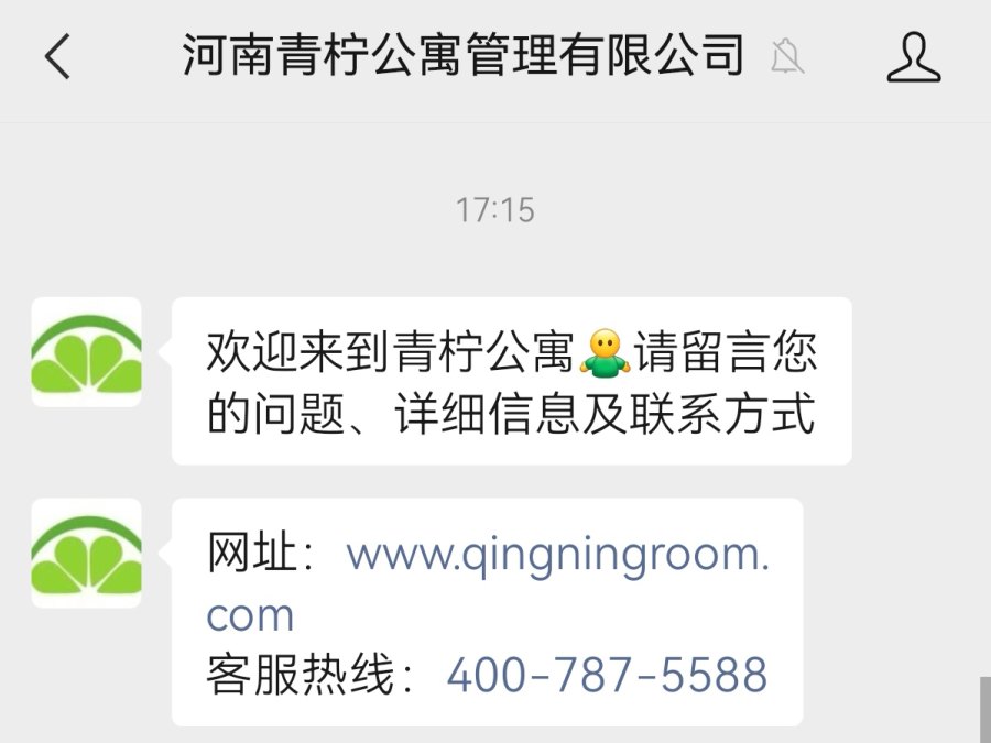 12月15日,记者查看“河南青柠公寓管理有限公司”微信公众号,发现“公寓服务”项显示的公司网址已无法打开,而拨打客服热线4007875588被提示“无此业务号码”,公众号内《关于我们》一文中则宣传“将始终保持初心,致力于为城市青年人提供温暖的家,让青年人在衣食住行领域因为居住品质的提升变得更加美好,也让未来城市因为居住体验的美好变得更和谐”。