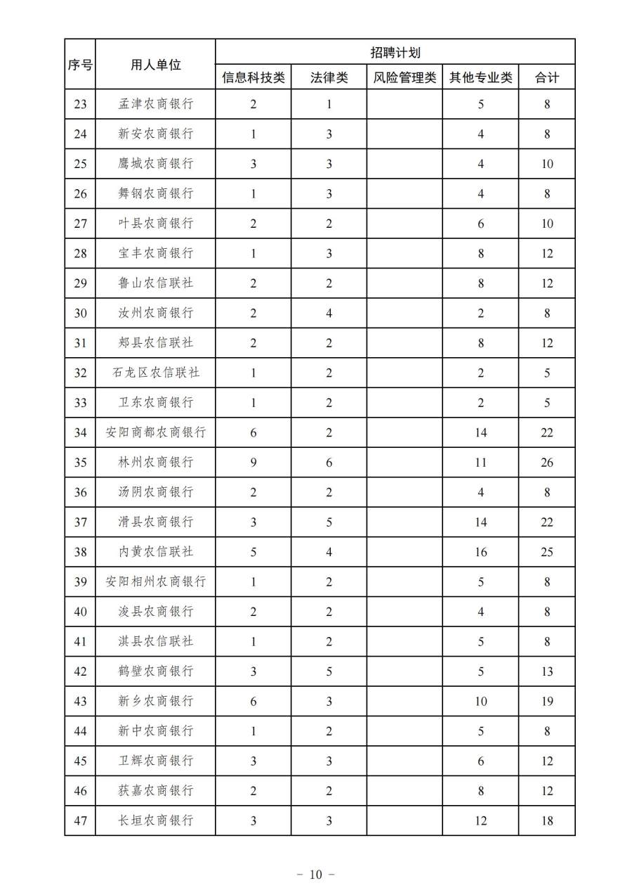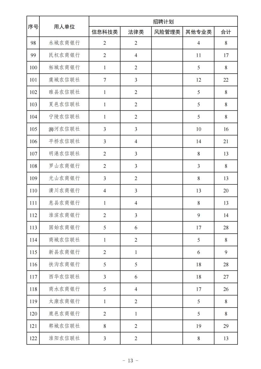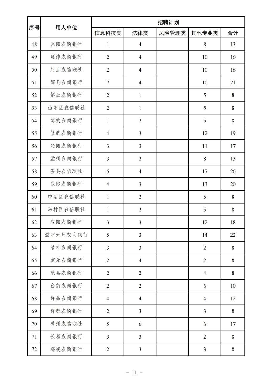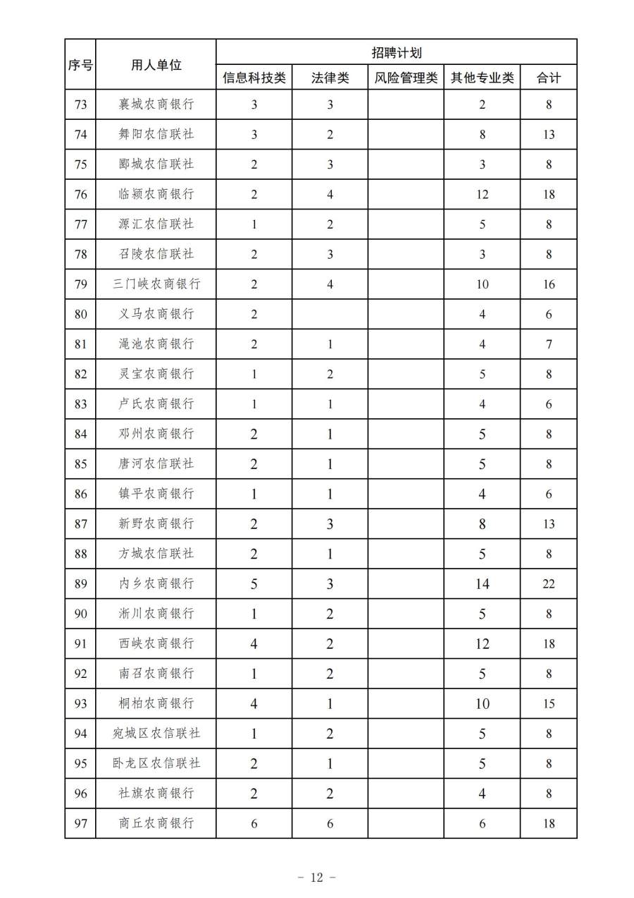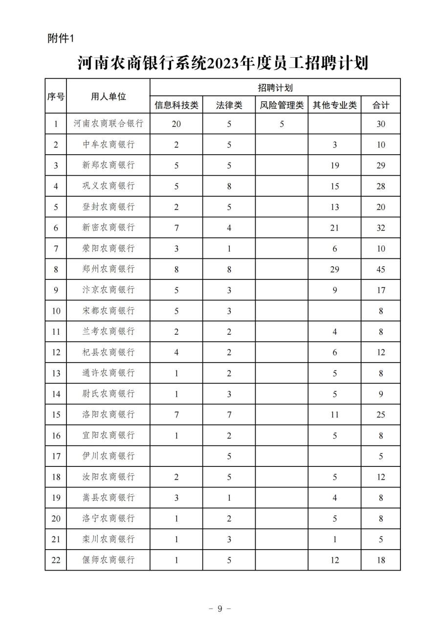 (一)河南农商联合银行招聘30人,其中信息科技专业类20人、法律专业类5人、风险管理专业类5人;