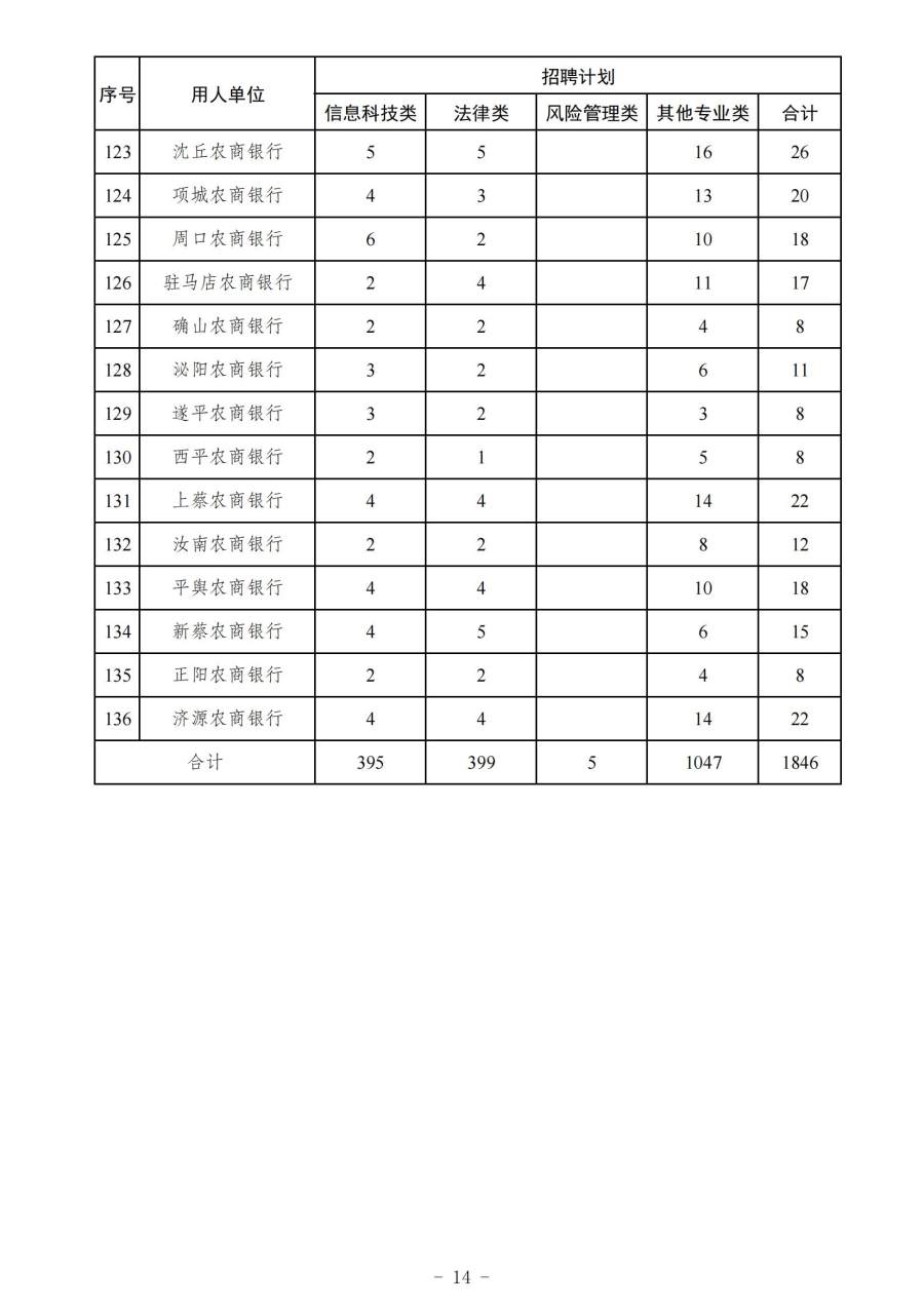 12月19日,河南农村商业银行系统发布2023年员工招聘启事,面向社会公开招聘一批劳动合同制员工,共1846人。