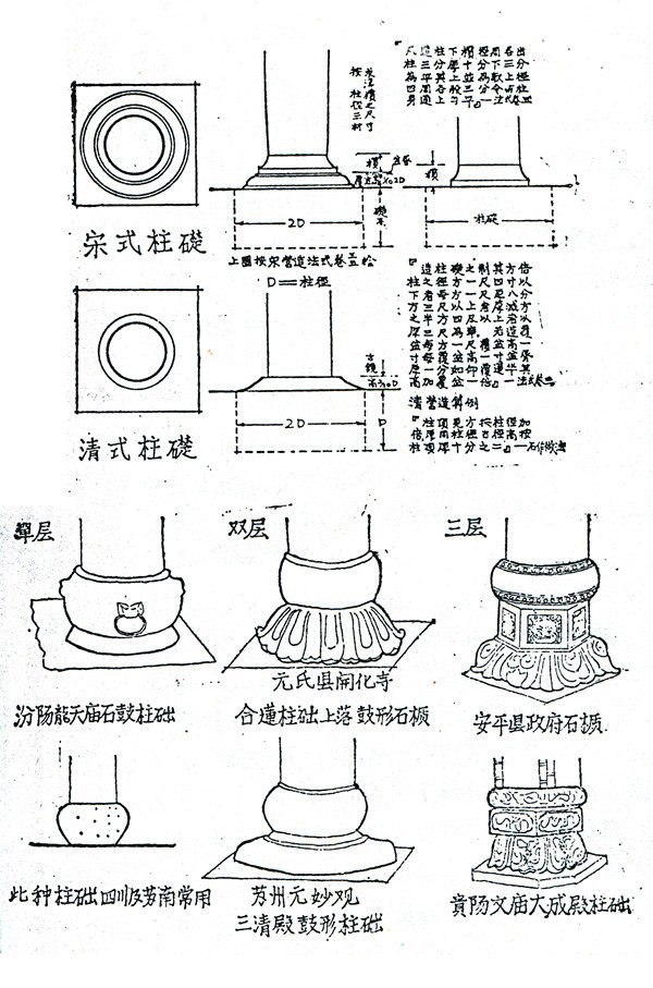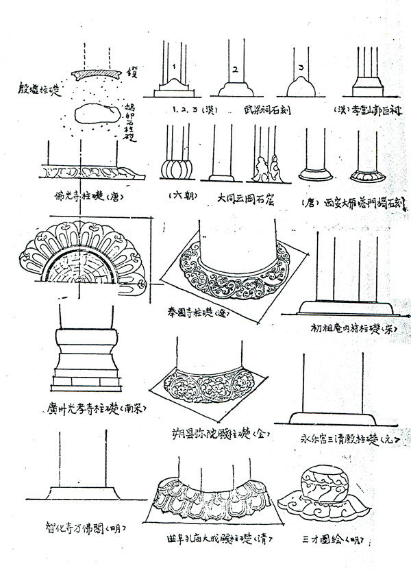 各时代柱础(选自祁英涛《怎样鉴定古建筑》)