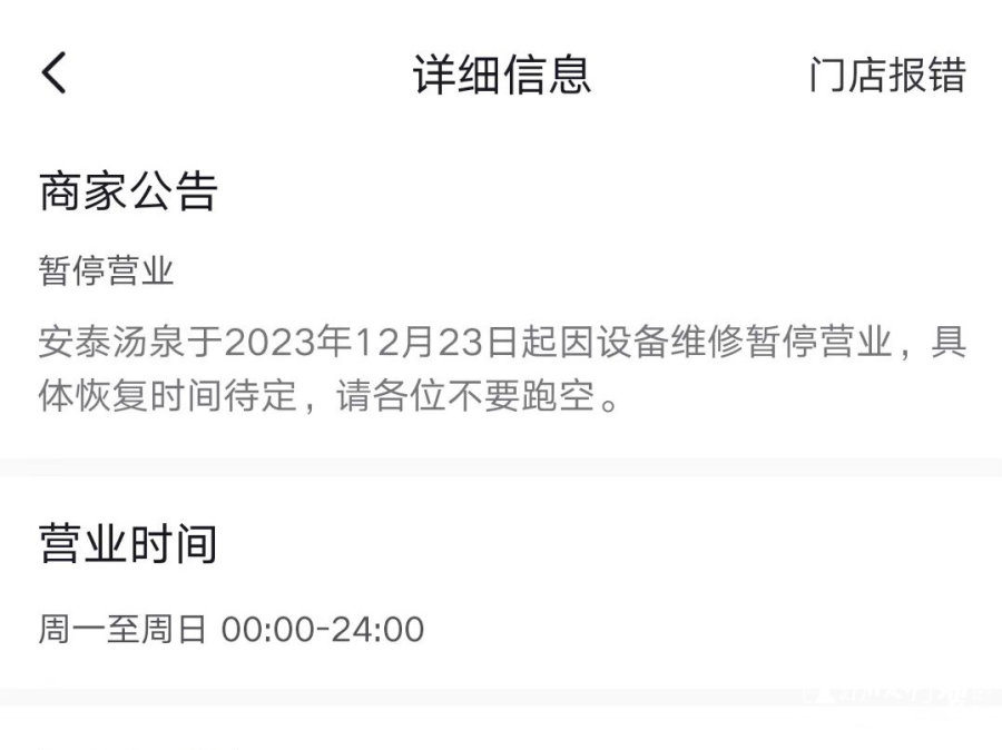 安泰汤泉关门一事引来周边居民关注,相关网站团购平台的商家公告也出现了该店“2023年12月23日起因设备维修暂停营业,具体恢复时间待定”的提醒,不少在此充卡的会员自发通过微信群集中在一起,尝试与经营者联系并求助市场监管部门维护权益,之后会馆关闭的大门得以重新打开,但前台以“系统盘不在”为由拒绝会员持卡消费又引发新的矛盾。