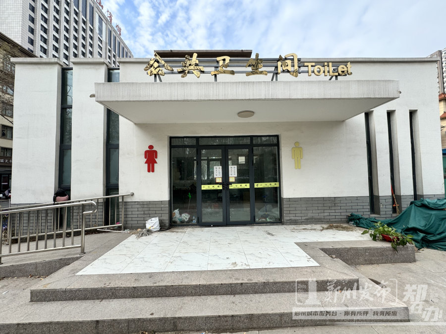15日中午,记者来到经三路与政四街交叉口,该处公厕建于路口西北角的游园之内,周边有多个居民小区和多家宾馆酒店,公厕玻璃门上贴有“暂未开放,禁止使用”的标识,内部落满灰尘,堆放着酒瓶。
