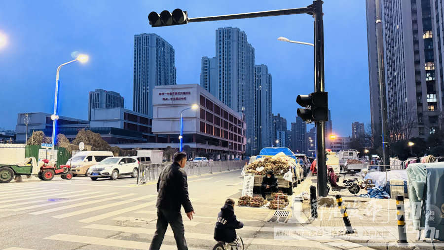 1月16日17时,记者来到沙口路与粮仓路交叉口,发现附近分布有谦祥·兴隆城、铁道枫景苑等居民小区,以及郑州一中教育集团兴隆校区、郑州惠济区东风路小学兴隆校区,是附近居民出行的必经路口,每天车流量、人流量较大。