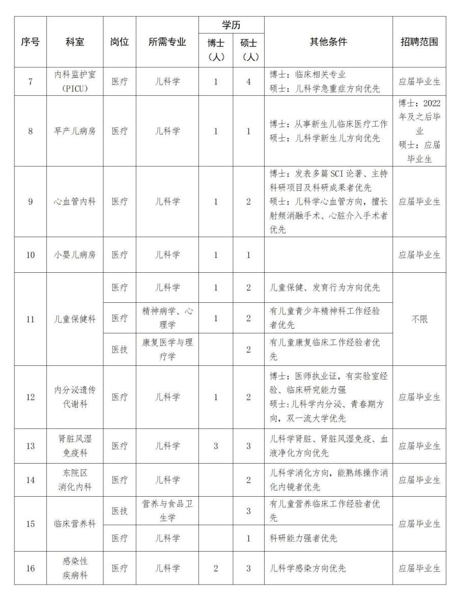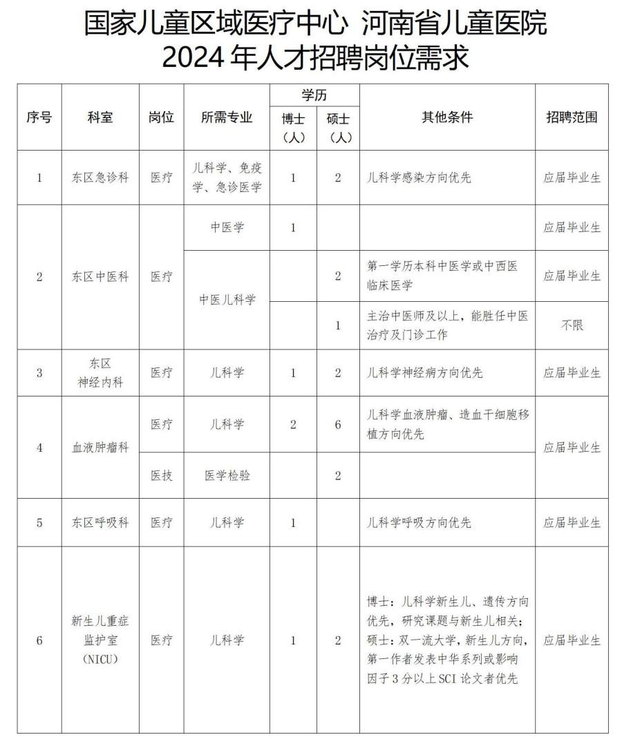 1月16日,国家儿童区域医疗中心 河南省儿童医院发布公告,根据医院业务发展需要,面向国内外公开招聘286名工作人员。