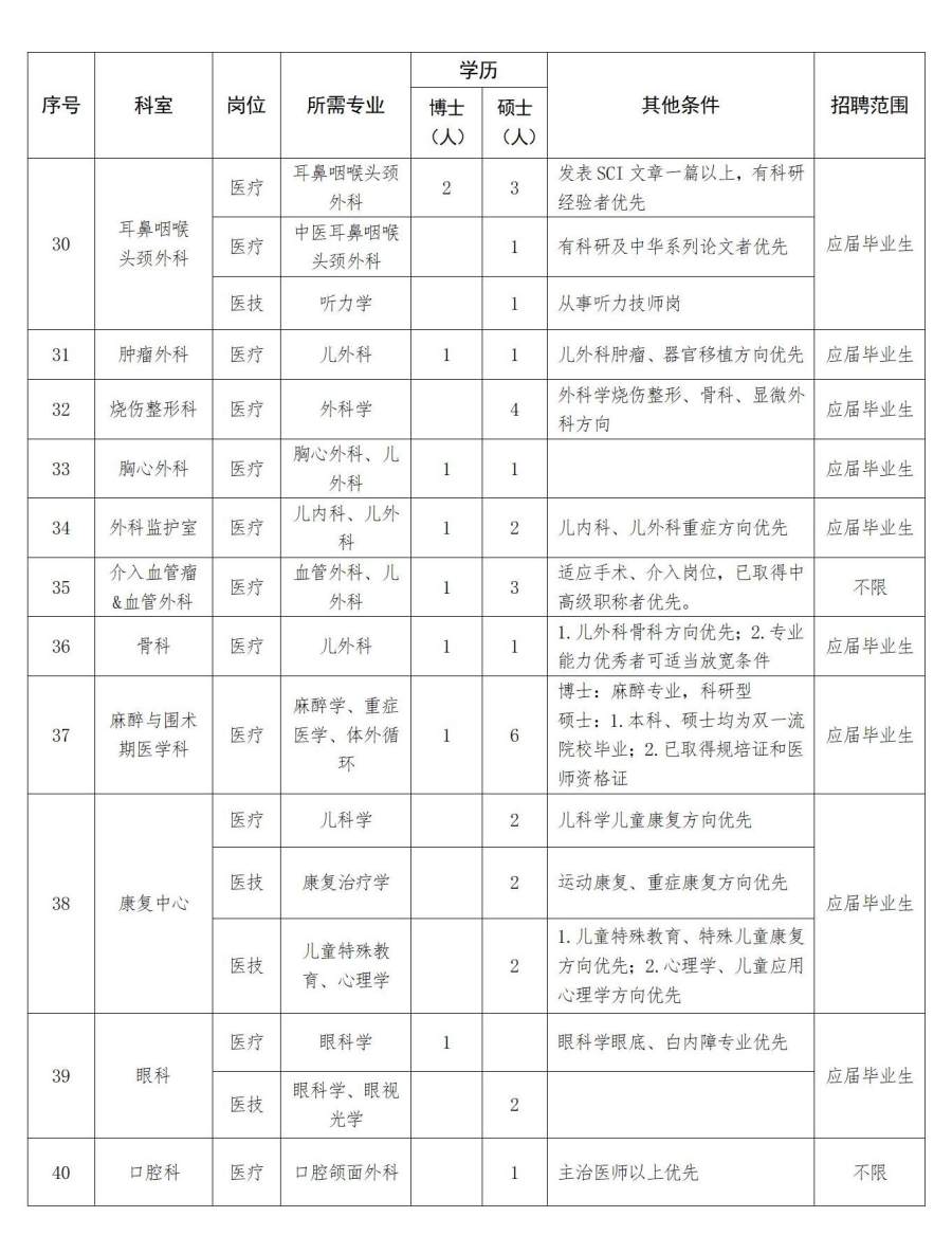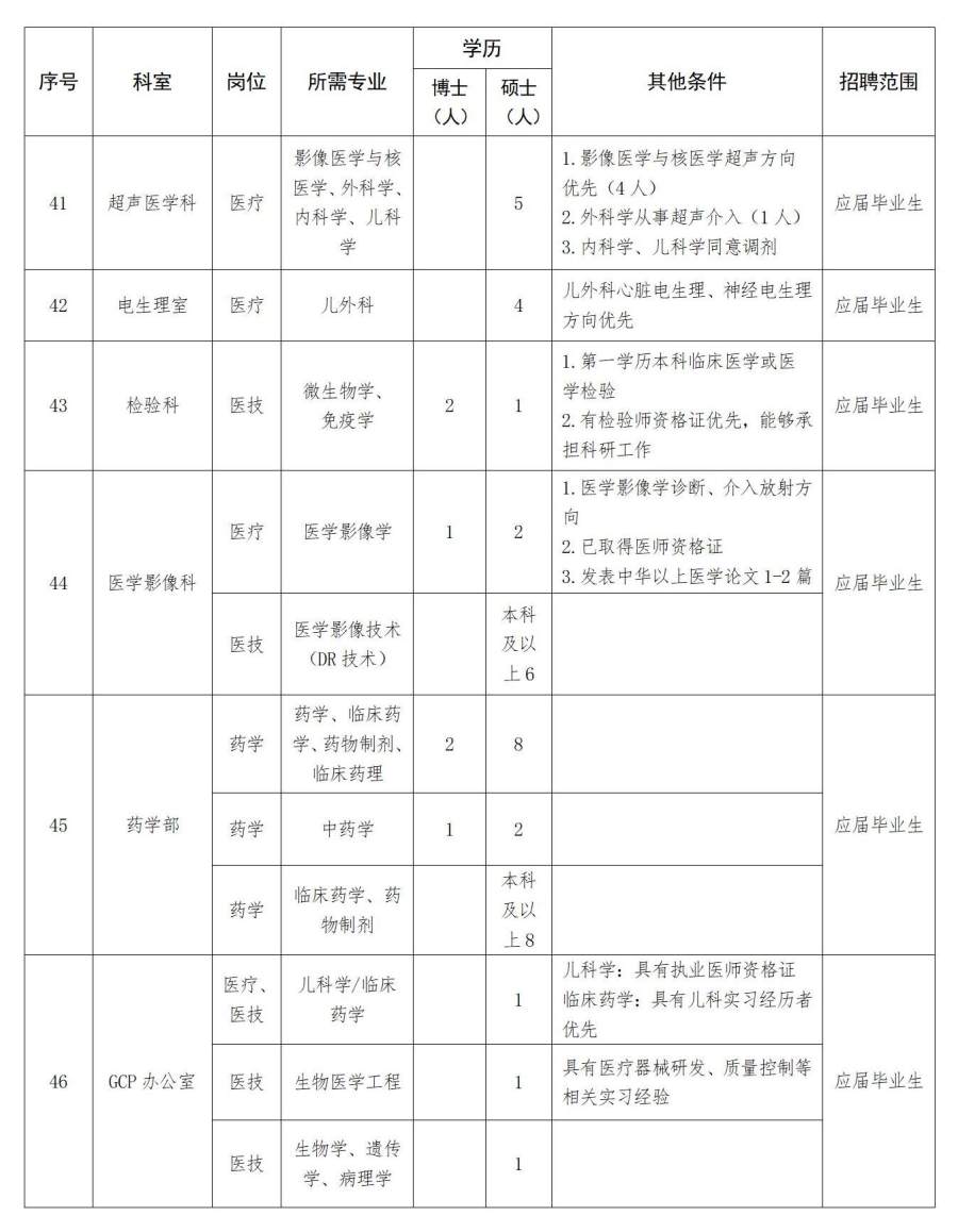 5.应届毕业生和留学归国人员取得学历、学位证书(含学历、学位认证)的时限要求为医院确定的报到日之前。对专业条件的要求,将结合高校专业设置目录和本单位、岗位用人实际予以综合认定。